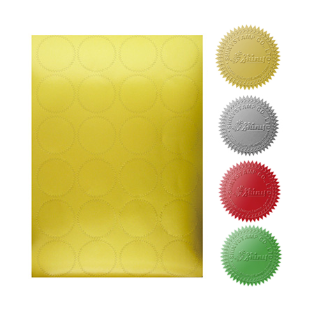 Give that classic touch to your embossed design or image with these labels. looks very presentable with certificates /awards etc. 40mm diameter circle with jagged edge design, in gold/silver/wine/green.