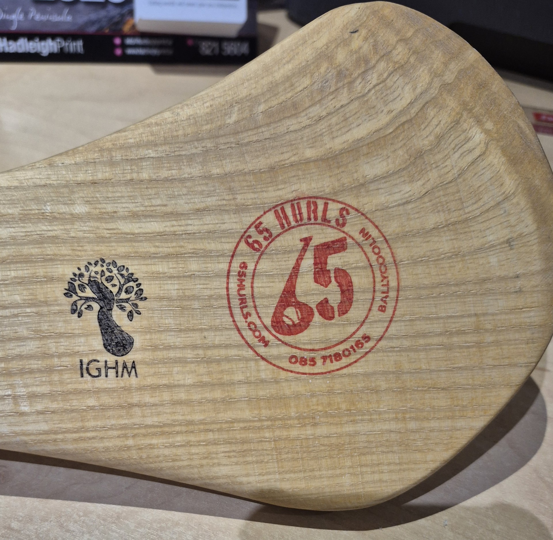 You can order special ink and pad for timber/wood marking your hurley, link at bottom of page